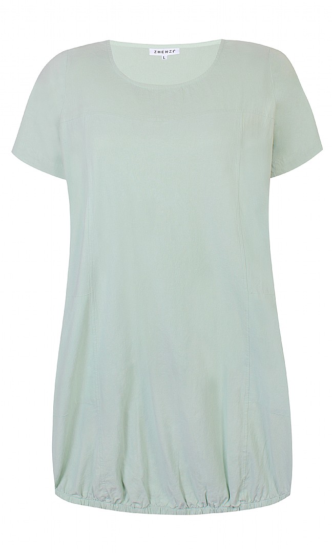 Klassisk Flot bomulds Kjole/Tunika fra Zhenzi, kjolen er med ballon facon med elastik i den nederste kant. Kjolen er med 2 Lommer, den er med rundhals og korte ærmer.
