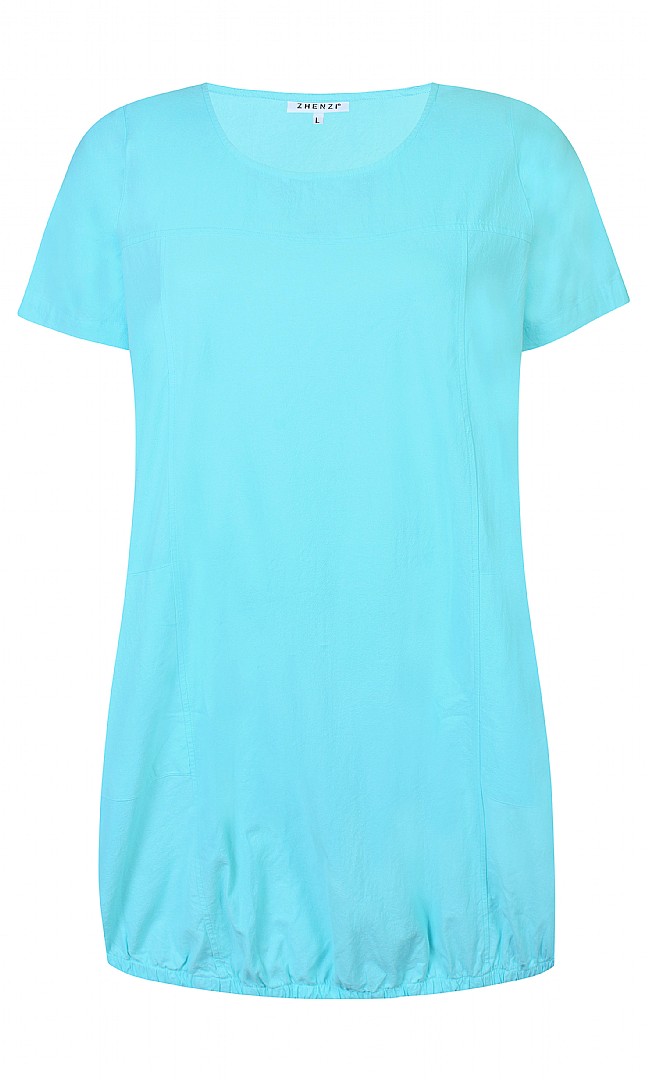 Klassisk Flot bomulds Kjole/Tunika fra Zhenzi, kjolen er med ballon facon med elastik i den nederste kant. Kjolen er med 2 Lommer, den er med rundhals og korte ærmer.