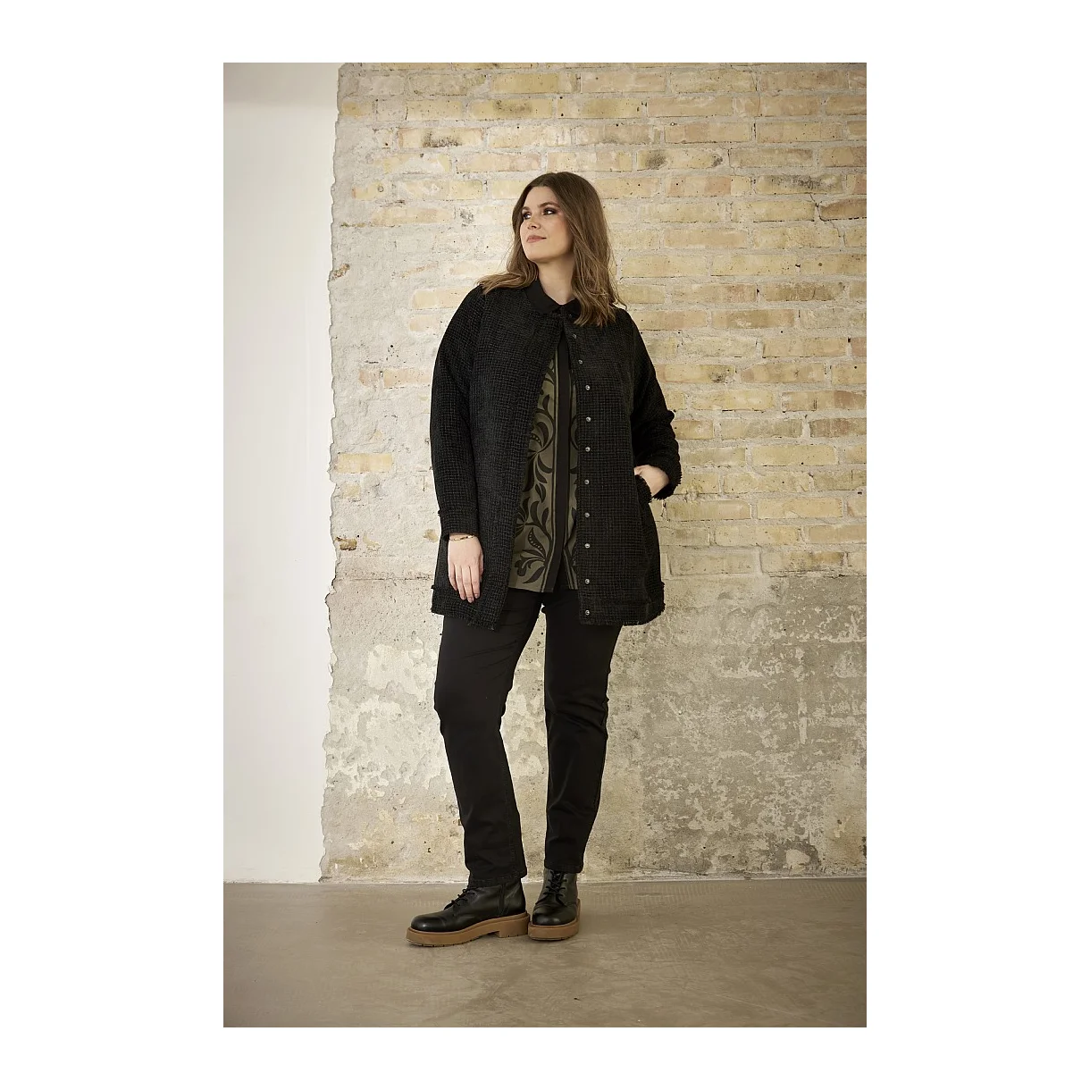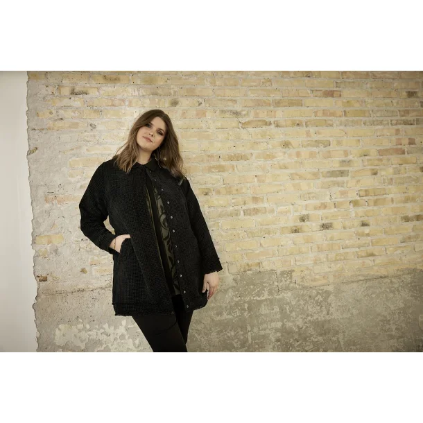 Denne skønne elegant jakke fra Zhenzi er så fin, denne jakke kan bruges både som inde og ude jakke Jakken er med glat sort foer, den lukkes med store skjulte trykknapper, den er med 2 Lommer og er med Lange ærmer. Style denne jakke til et par jeans til hverdag, og hvis man skal være lidt pænere så til en nederdel.