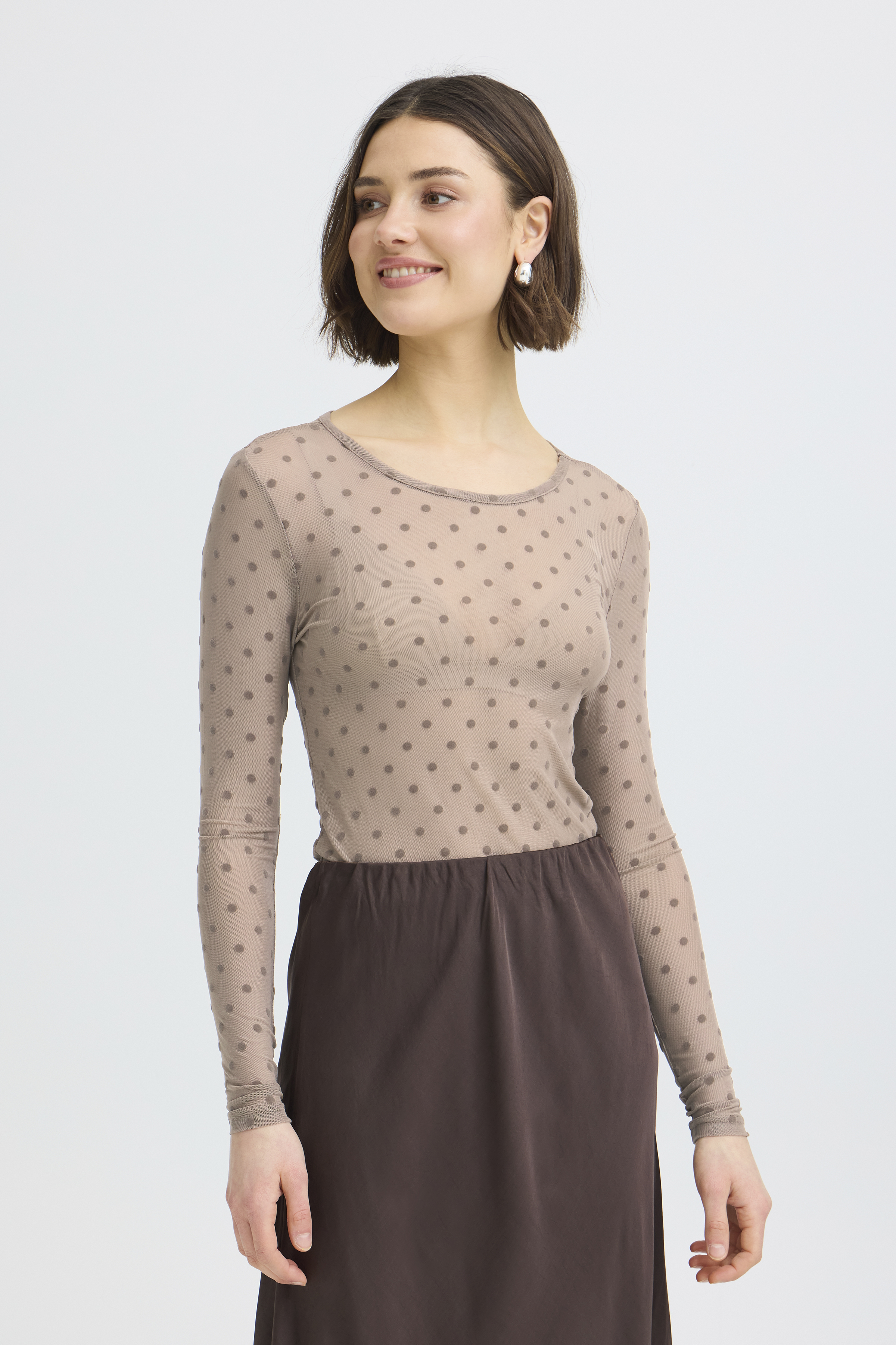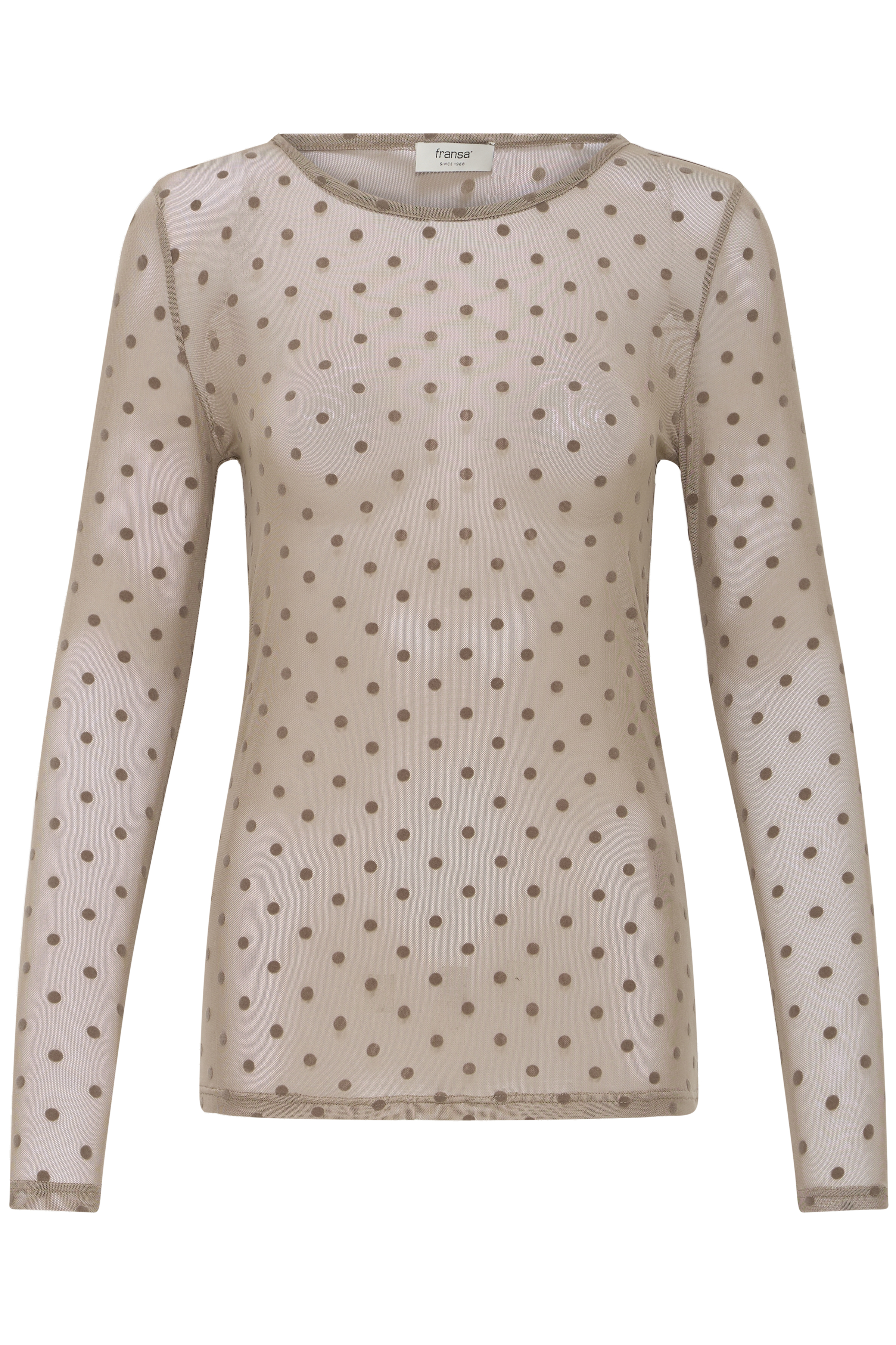 Den smukke transparente kvalitet med fine prikker giver et let og sofistikeret udtryk. Blusen er perfekt som layering – brug den under kjoler, strik, veste eller blazere for at skabe dybde og et moderne look.