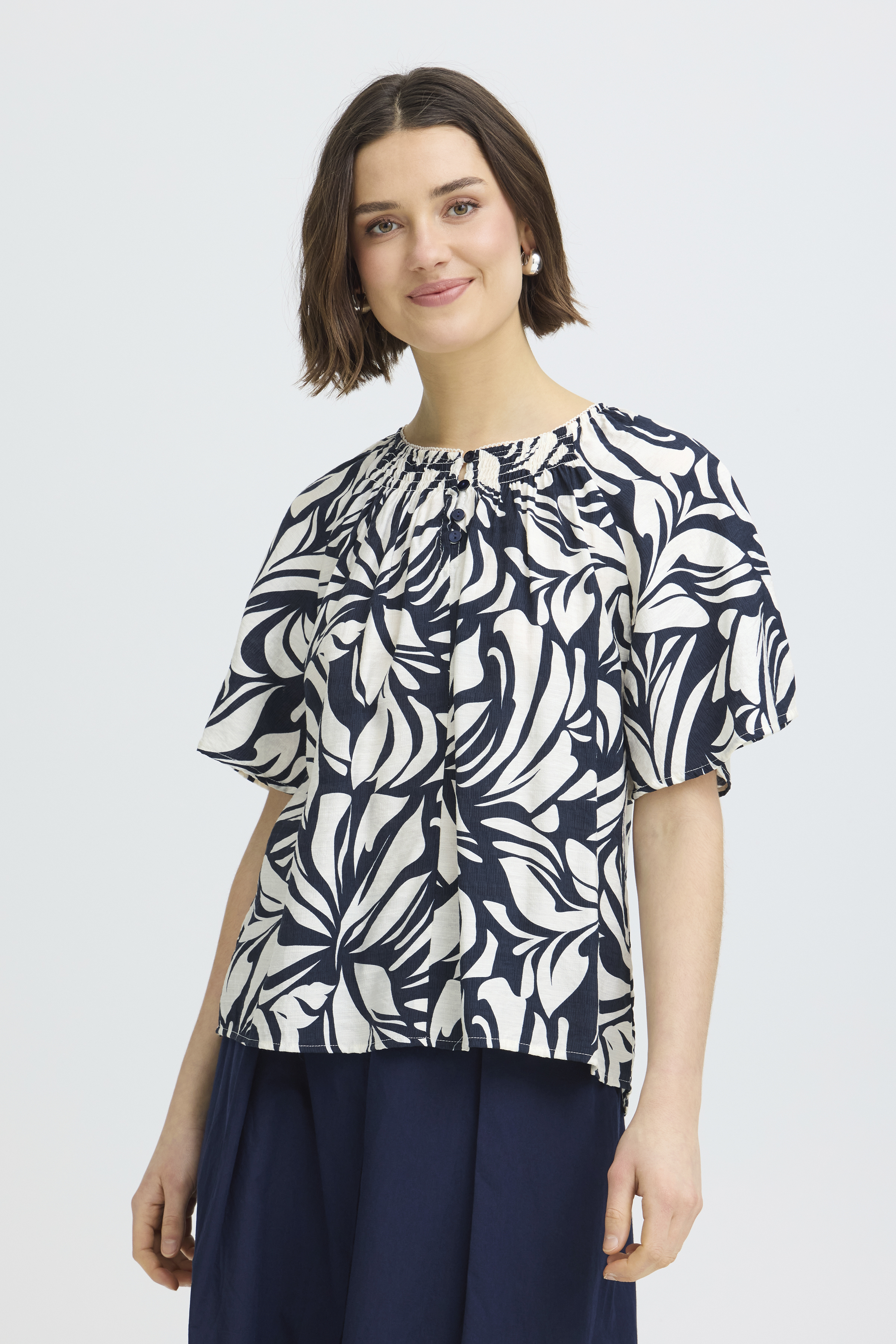 Blusen er designet i samme populære model med smock-syning ved halsen, som giver en flot rynket effekt og en behagelig pasform. De små knapper foran tilfører en fin og klassisk detalje.