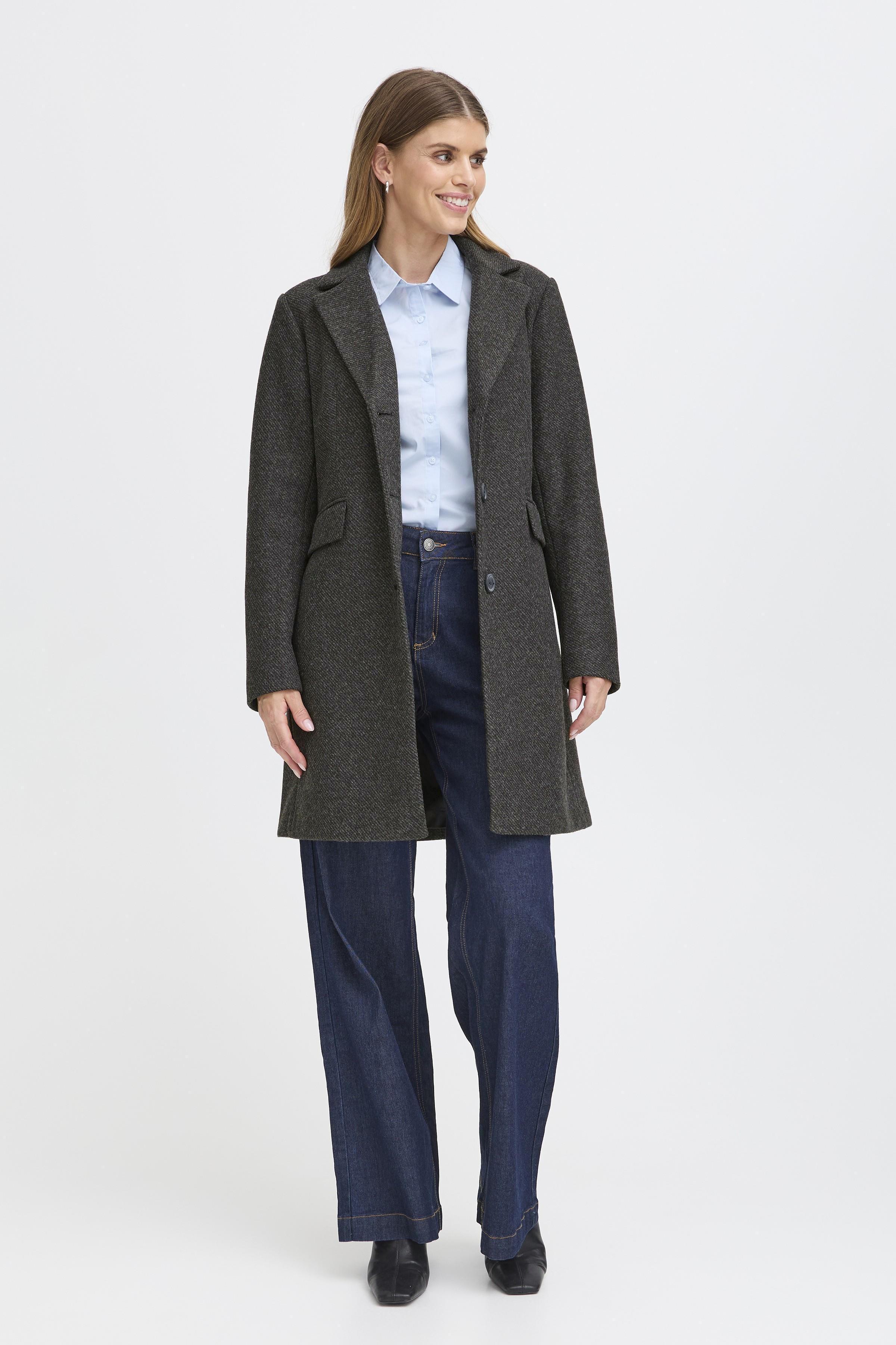 Elegant og tidløs frakke fra Fransa i uld-look. Jakken har klassisk reverskrave, knaplukning foran og flotte lommedetaljer, som giver et stilrent udtryk. Perfekt til både hverdagsbrug og pæne anledninger – let at style over skjorte, kjole eller strik.