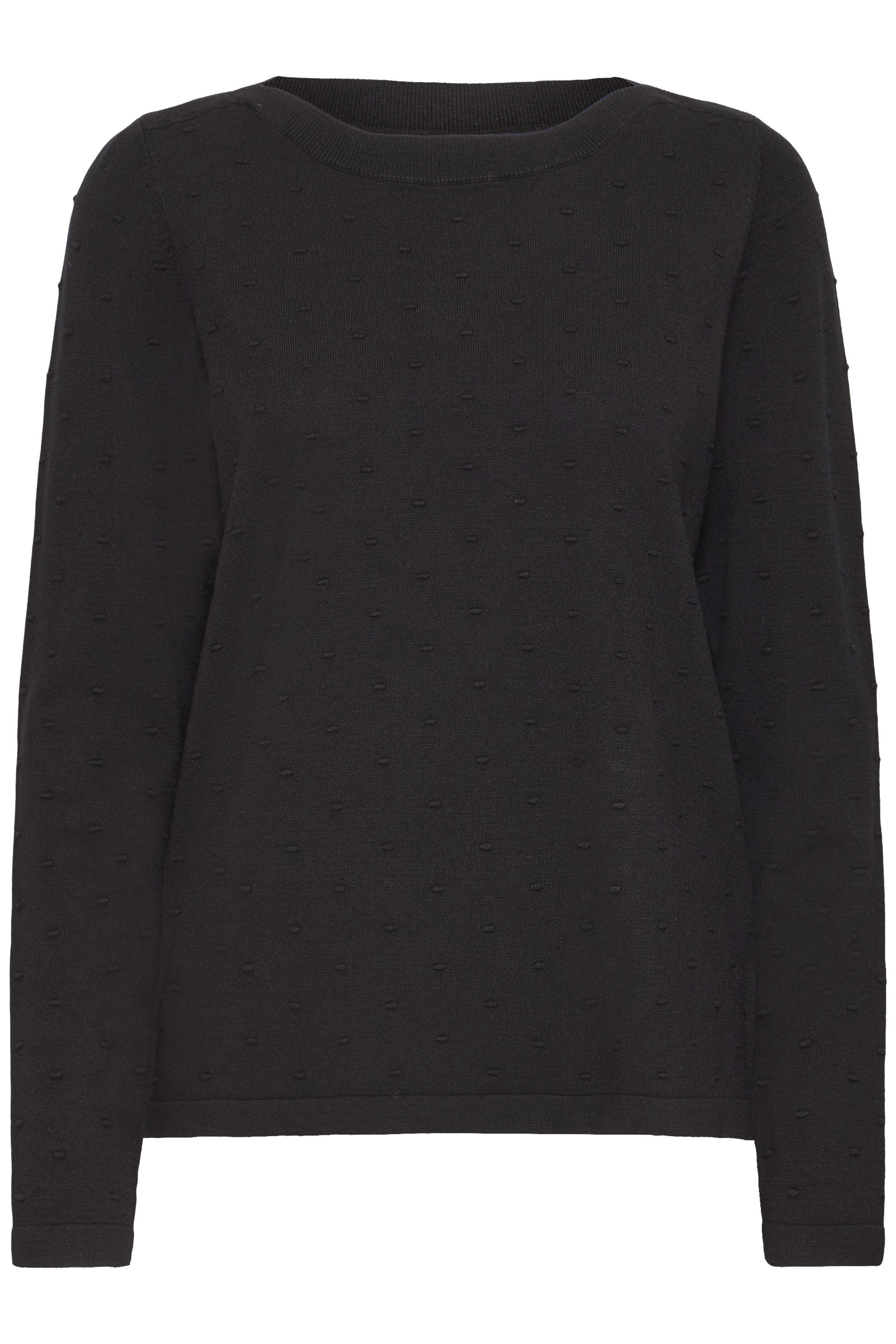 Lækker sort strikbluse fra Fransa i str. S-XXL Designet i en blød viskose-strik med små bomber foran, mens ryggen er glat for et enkelt og stilrent udtryk. Den runde hals og lange ærmer gør blusen perfekt både til hverdag og arbejde – nem at style med jeans, bukser eller nederdel.