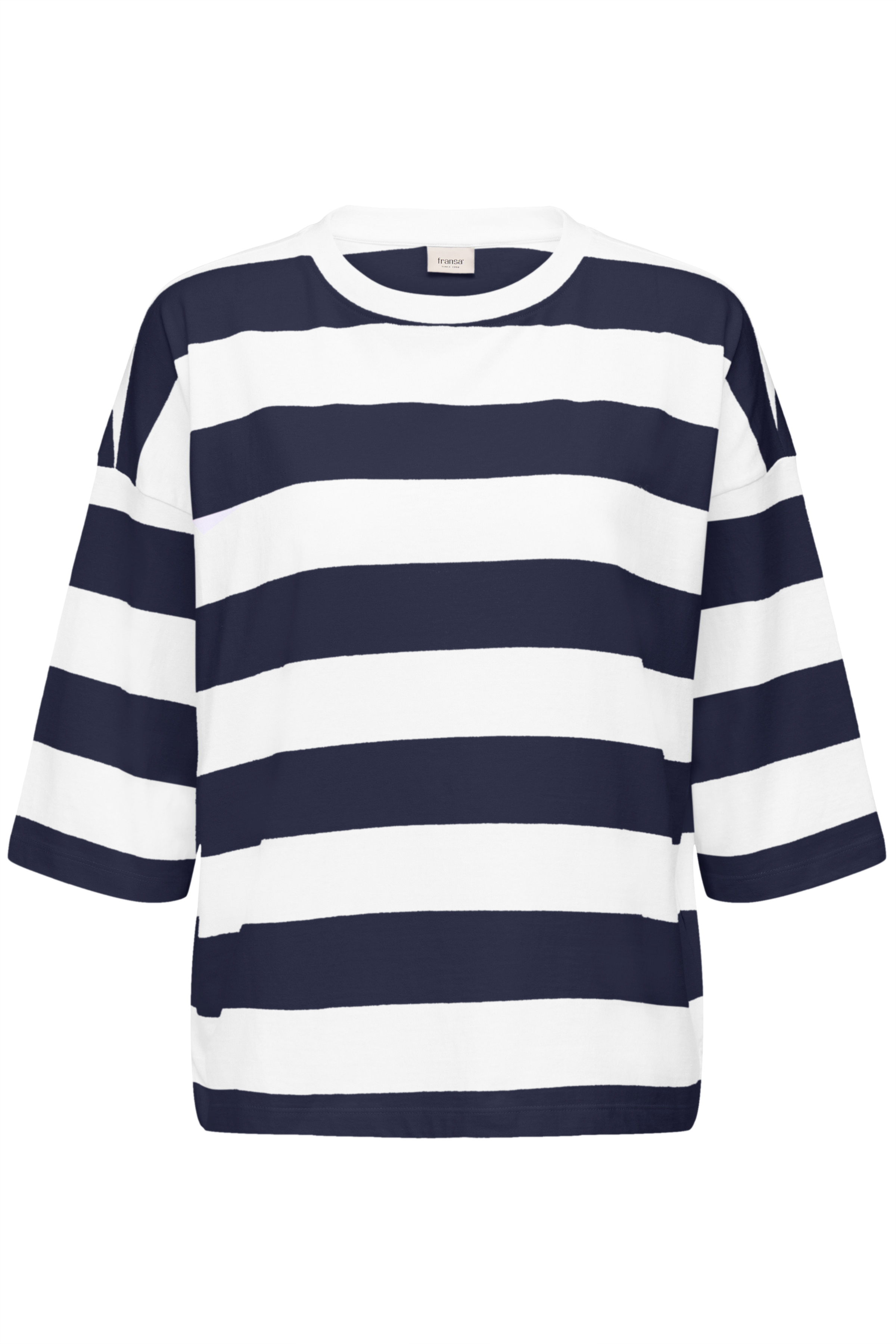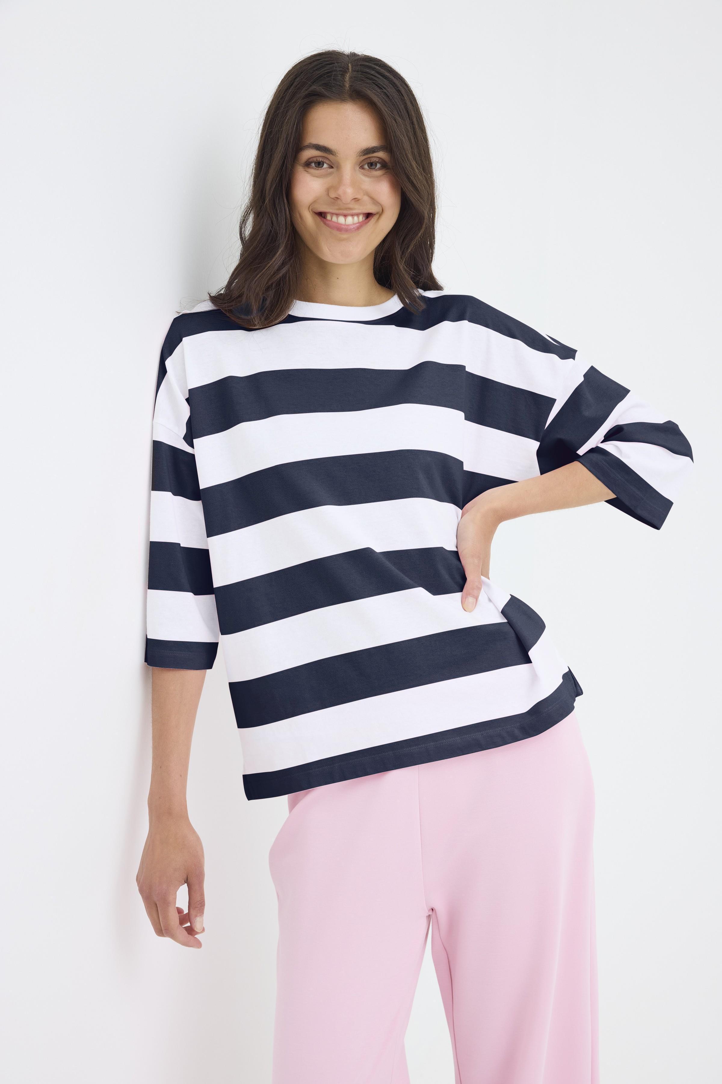 En afslappet og stilren bluse fra Fransa med et klassisk og moderne udtryk. De brede striber i marineblå og hvid giver et tidløst look, mens den løse pasform sikrer høj komfort hele dagen.
