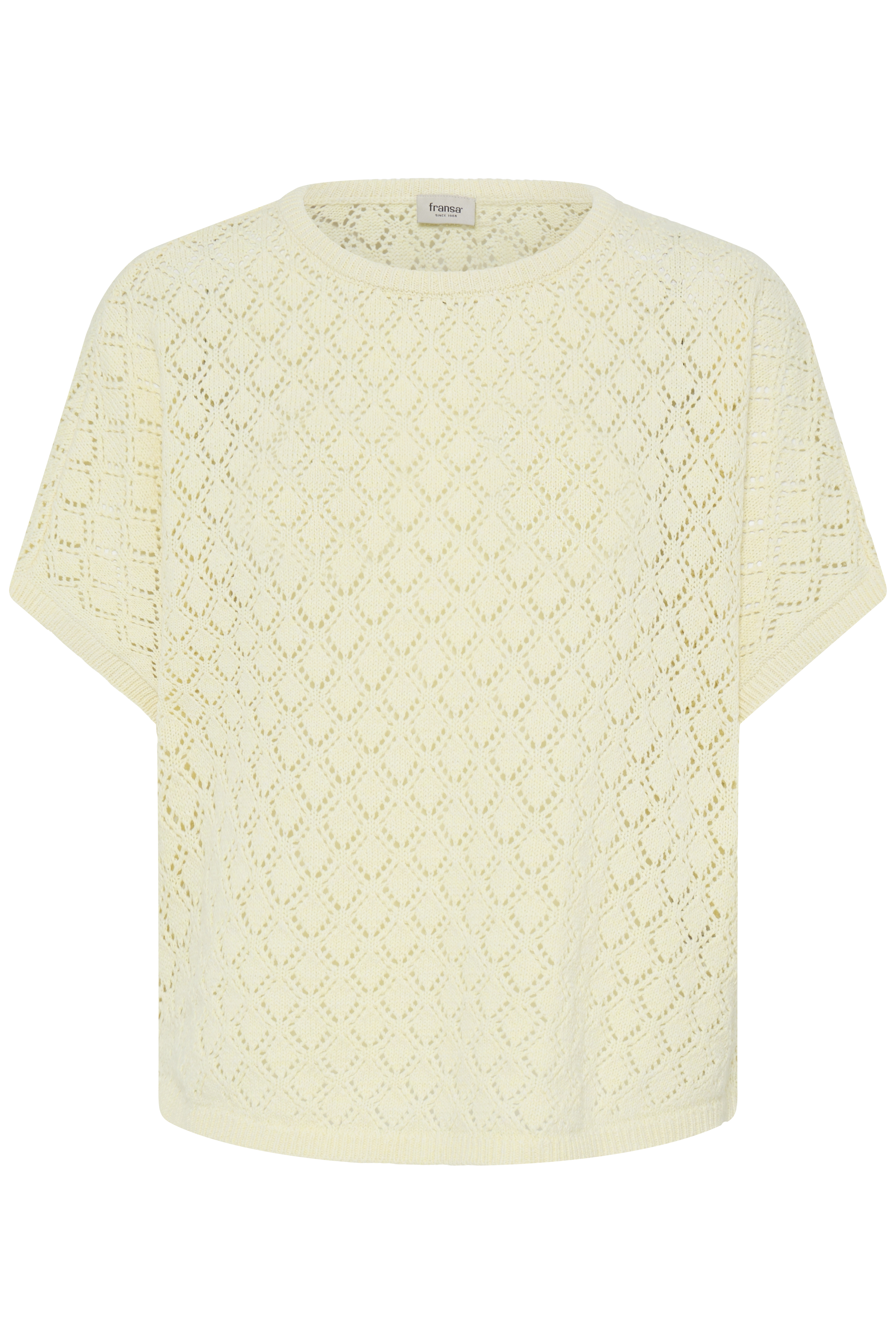 Let og feminin strikbluse fra Fransa i en smuk lys gul nuance. Blusen har et elegant hulmønster, der giver et luftigt og sommerligt udtryk, samtidig med at den føles behagelig at have på.