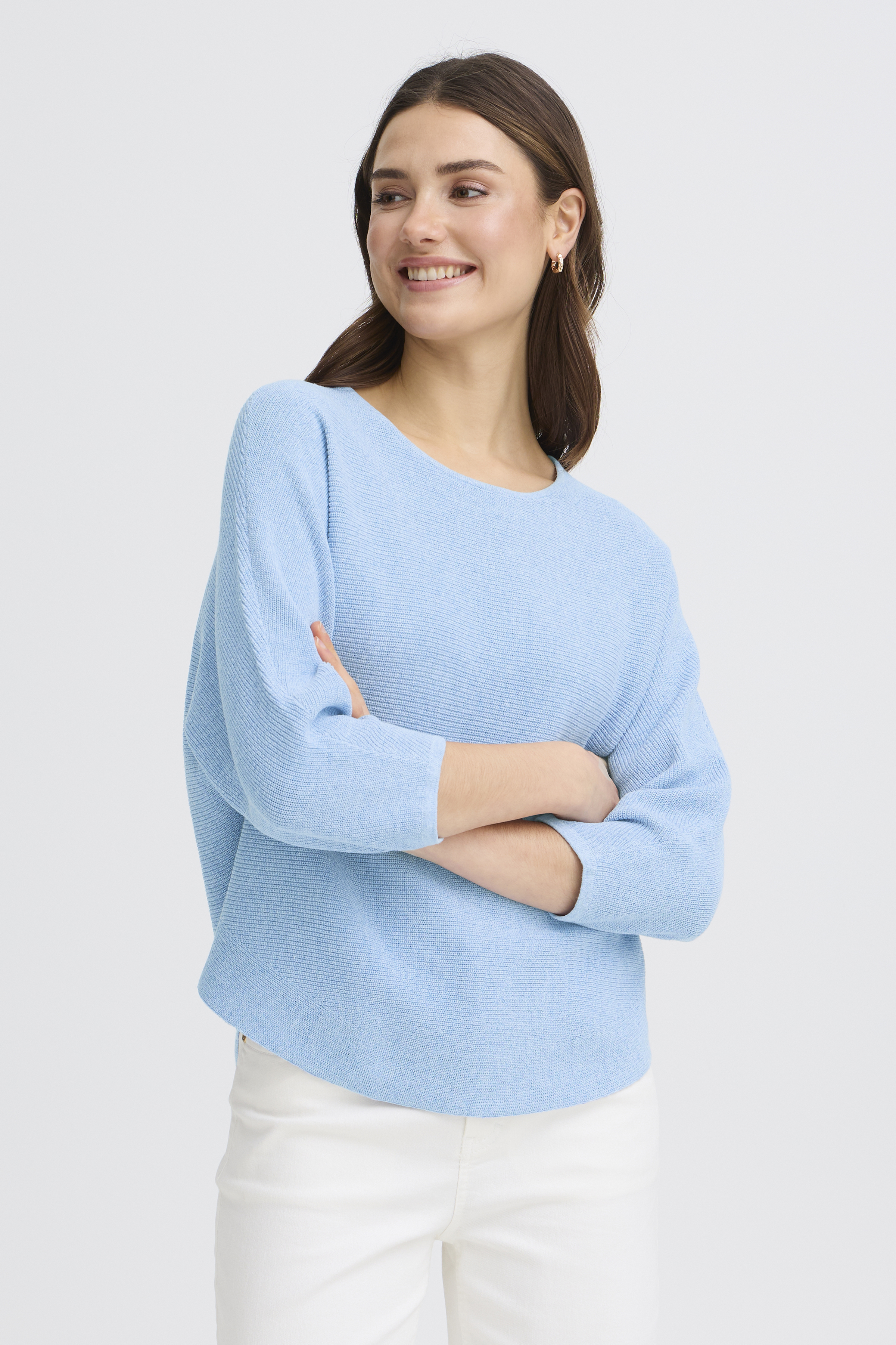 Strikken har et enkelt og tidløst udtryk med rund hals og en afslappet pasform, der falder flot. Perfekt til både hverdag og job – style den med jeans, bukser eller en nederdel for et klassisk look.