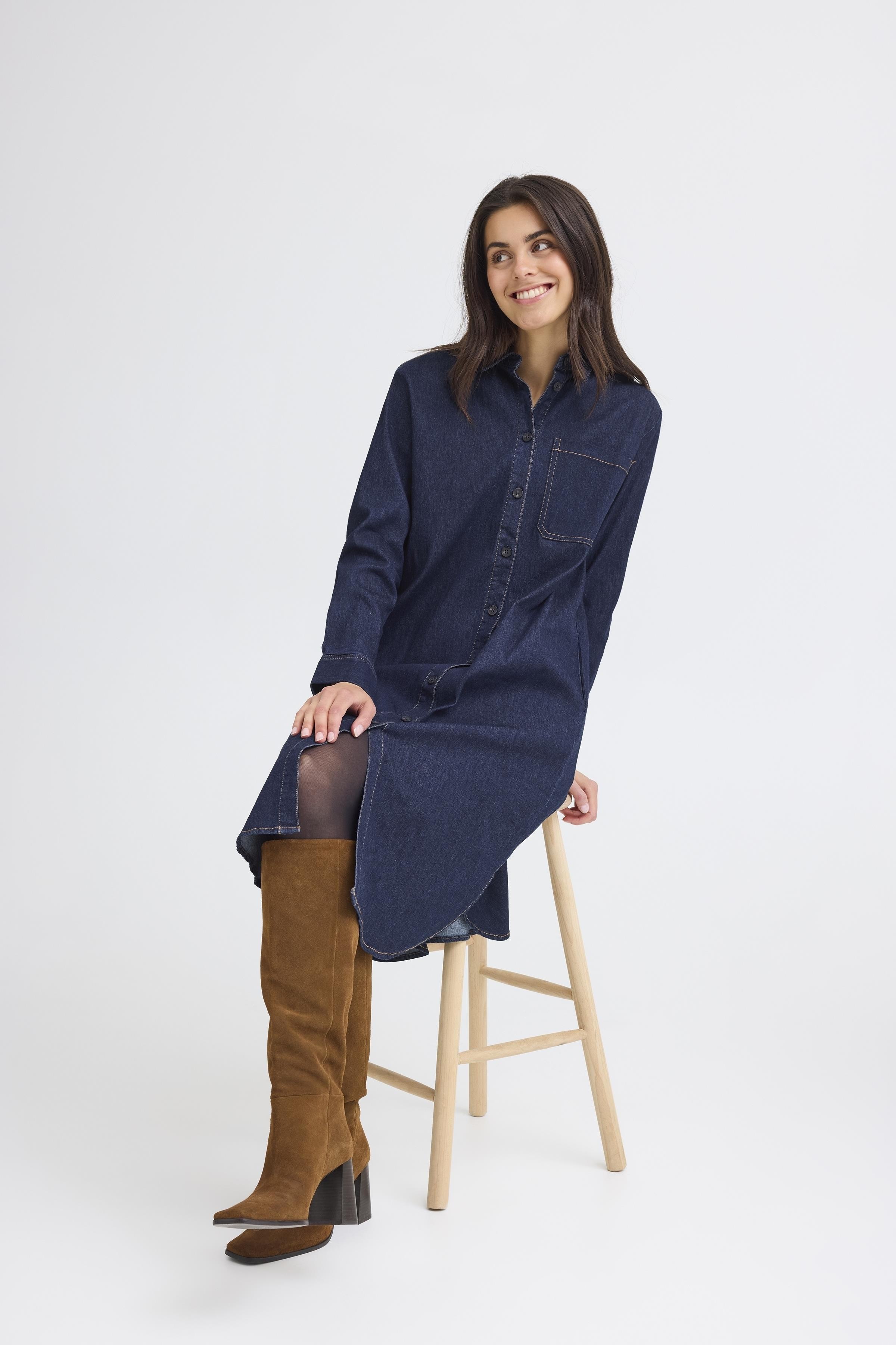 Denne populære denim skjortekjole fra Fransa er et must-have i garderoben. Kjolen har klassisk skjortelook med krave, gennemgående knaplukning og brystlomme. Den er skåret i en løs og behagelig pasform, som gør den perfekt både til hverdagsbrug og mere styling med støvler eller sneakers. Et tidløst design, der kan bruges året rundt.