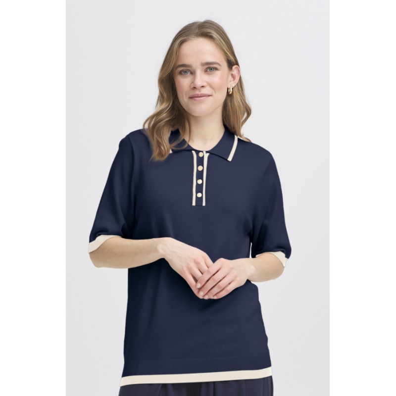 Fransa FRCONTRAST PU 1 – Marine strikket polo 20616244 Navy Blazer