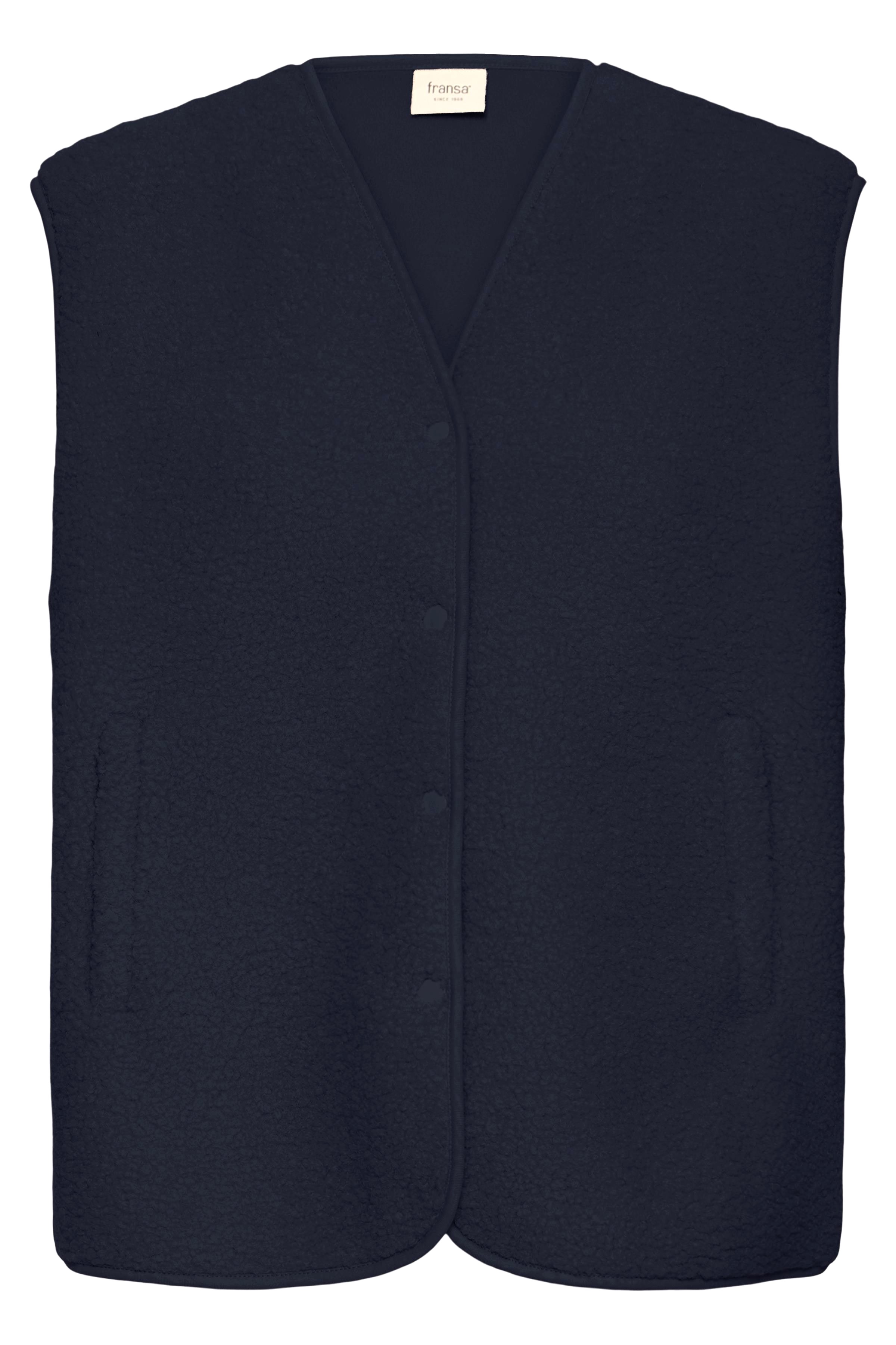 Opgrader din efterårsgarderobe med denne smarte teddy vest fra Fransa. Vesten er designet i en blød og lun teddy kvalitet, som giver et moderne og casual look, perfekt til lag-på-lag styling. Den har praktiske trykknapper foran og en klassisk pasform, der gør den nem at style over både skjorter, strik og kjoler. Med sin neutral navy farve er den et musthave til både hverdag og fritid.