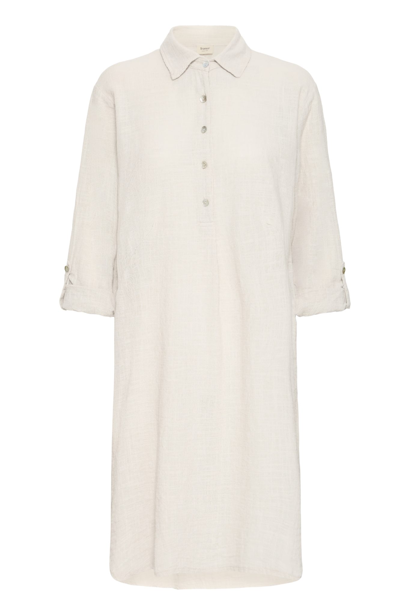 Med de trekvart lange ærmer, der kan rulles op og knappes, får du en alsidig kjole, der kan styles på flere måder – både med sandaler, sneakers eller støvler.