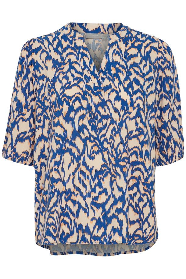 Flot bluse fra Fransa, blusen er i 100% Viskose. Blusen er med V-hals, korte ærmer hvor der er elastik i bunden. Blusen er super lækker og have på. Styl blusen med en jeans nederdel
