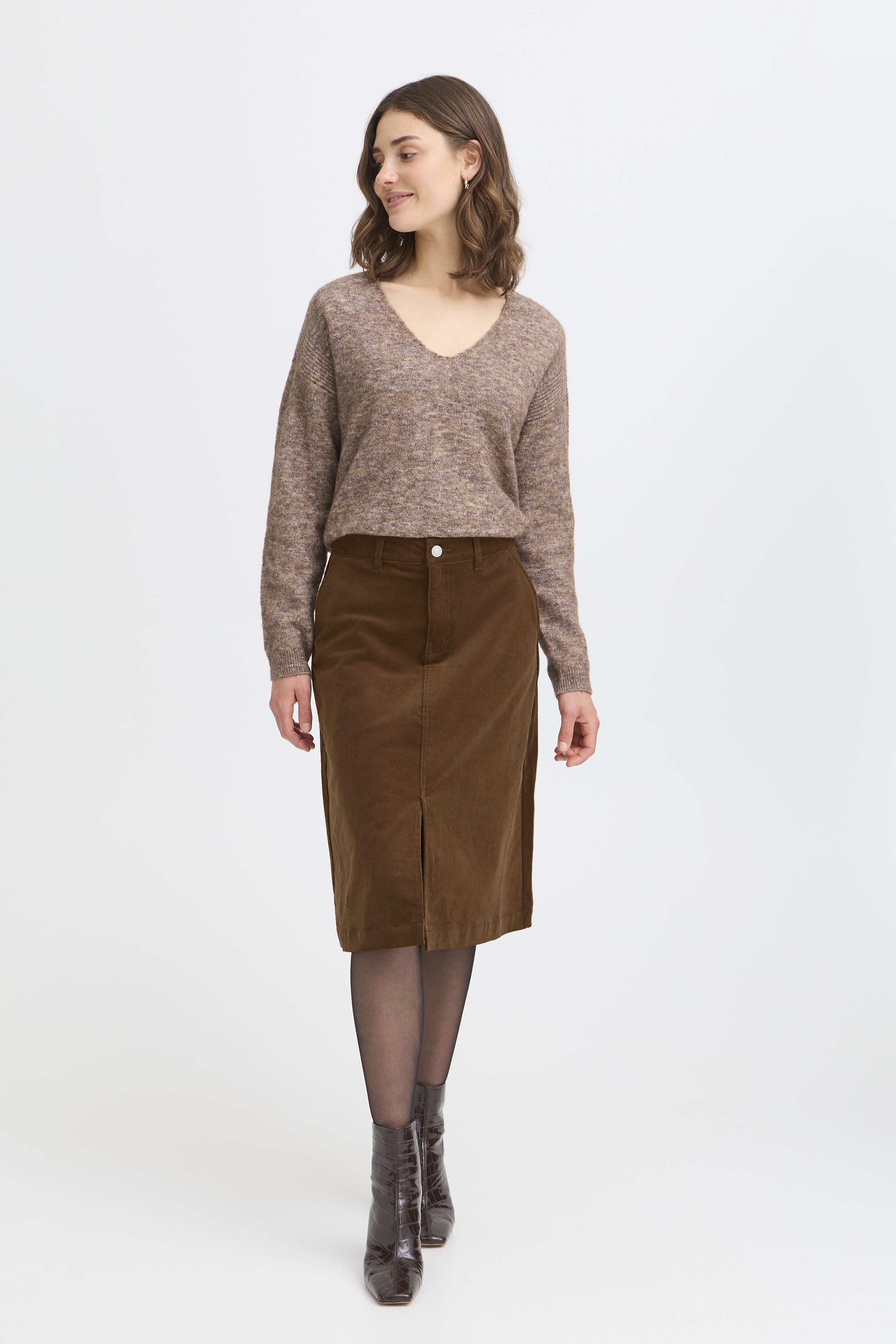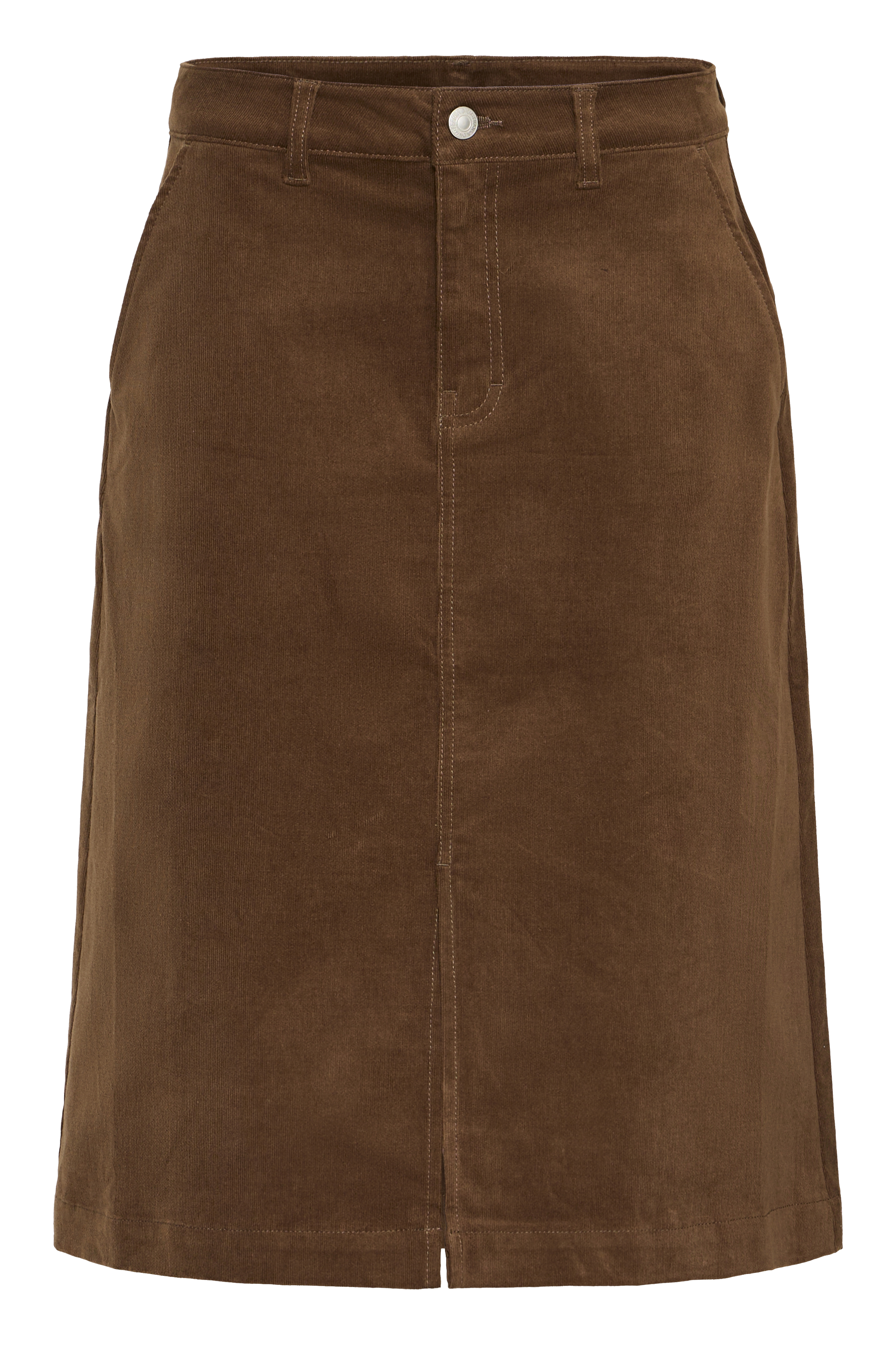 Opdag denne smukke nederdel fra Fransa i blød baby fløjl, perfekt til efterårets og vinterens garderobe. Nederdelen har et klassisk, knælangt snit med slids foran, bæltestropper samt knap- og lynlåslukning, som giver et tidløst og elegant udtryk. Den varme brune farve gør den let at style med strik, skjorter eller bluser – både til hverdag og fest.