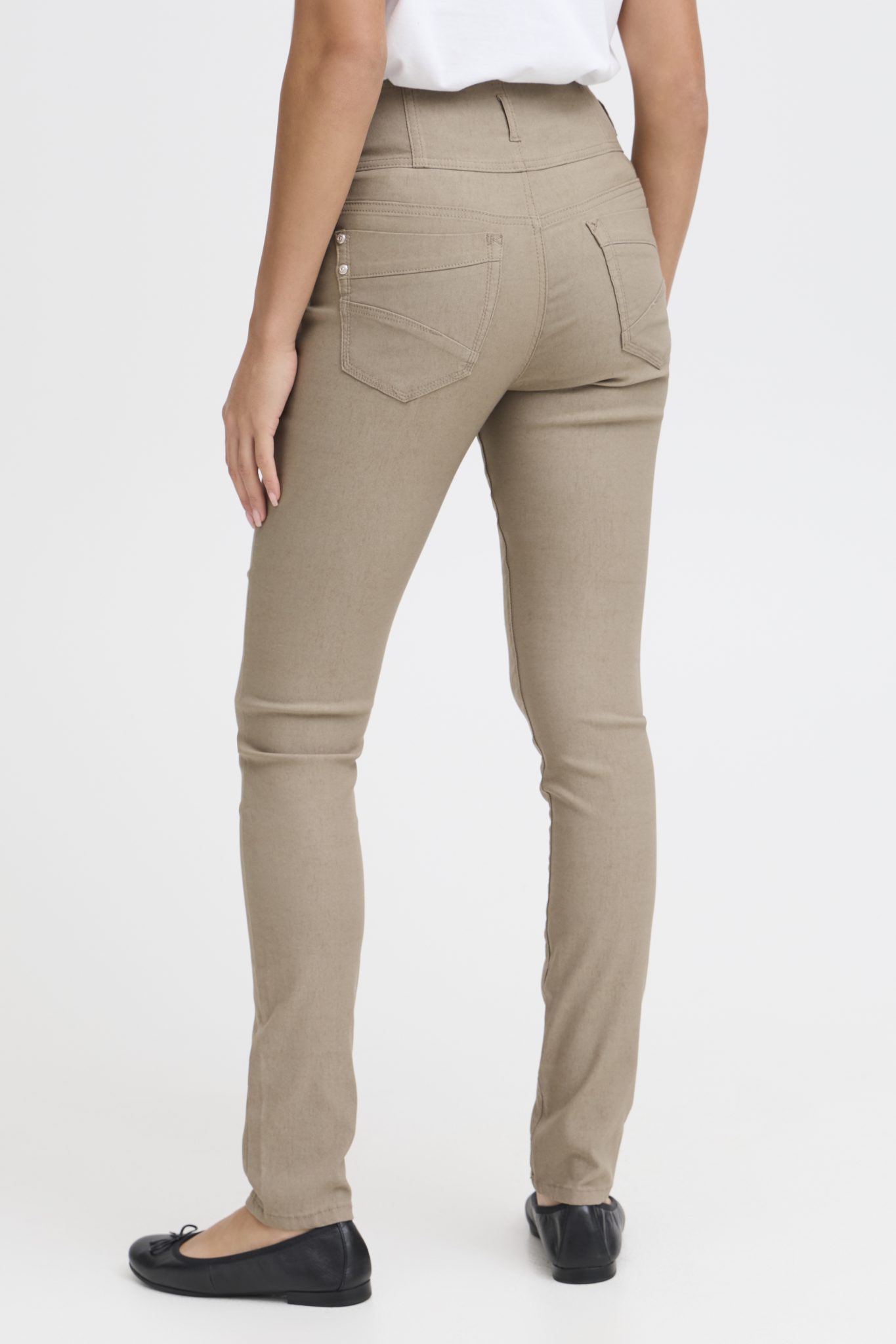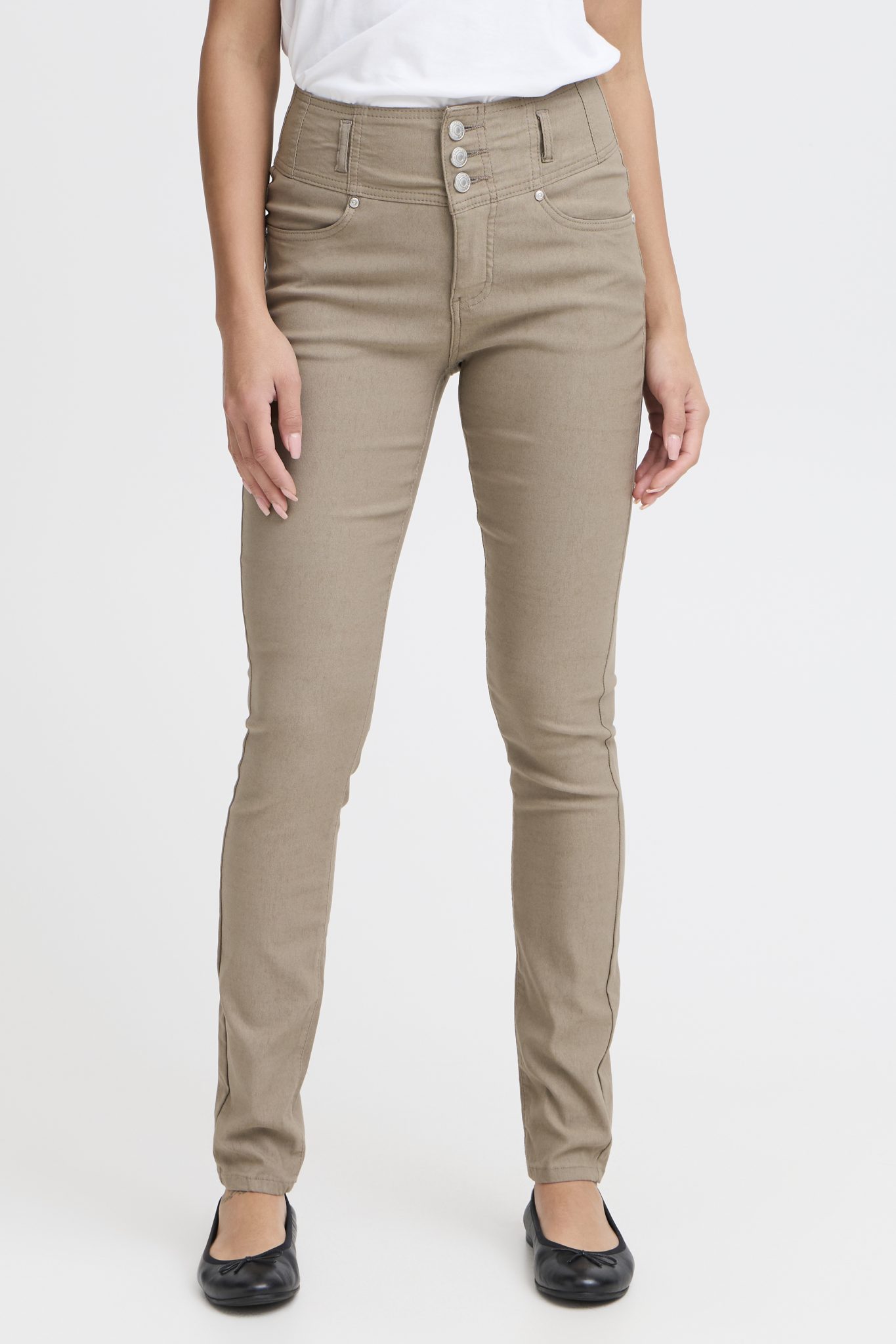 .Basic Zalin Fransa buks i flere farver med tre knapper og lynlås som lukning. Masser af stræk, bæltestropper i livet og lommer både foran og bagpå. Denne buks sidder super dejligt