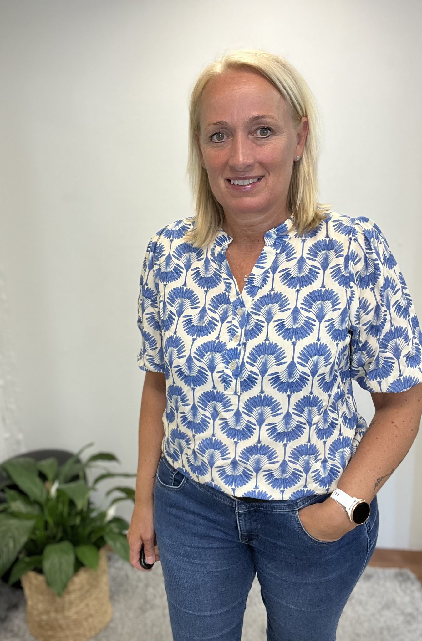FXdalani 3 bluse Råhvid med blå print.