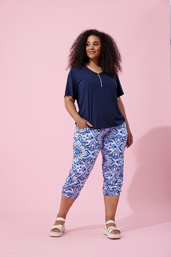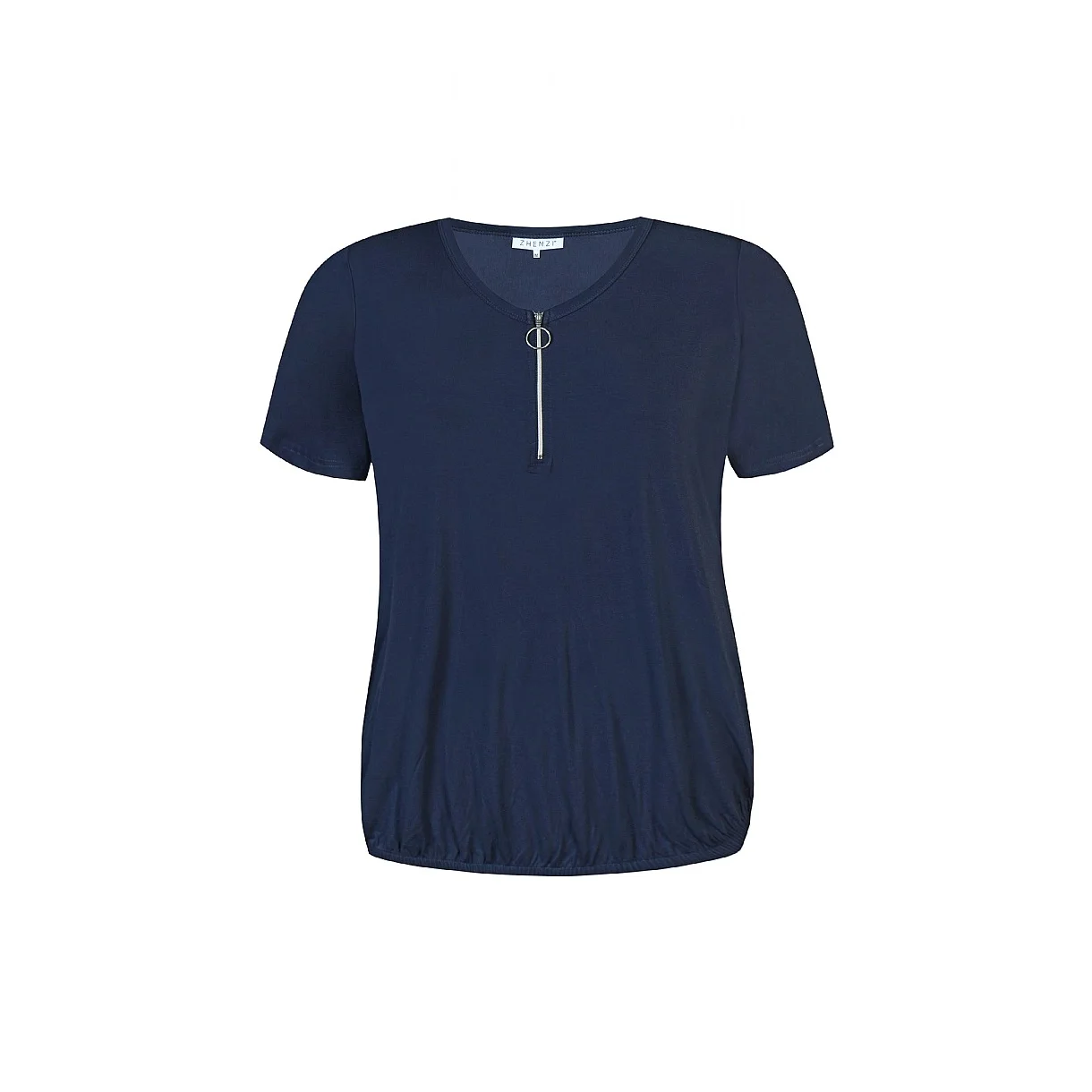 Enkelt jersey bluse fra Zhenzi. Blusen er med elastik i den nederste kant, hvilket gør at man nemt kan sætte blusen, så den poser lidt på maven. Blusen er med korte ærmer.