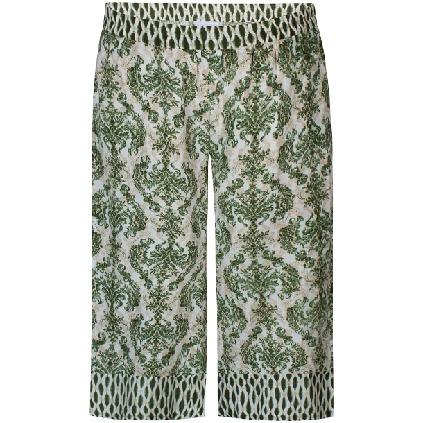 Flotte og lette bukser i store størrelser fra Zhenzi, lavet i 100% viskose. De har samme smukke grønne mønster og kontrastdetaljer som den matchende tunika, hvilket gør dem perfekte både som enkeltstående style og som et komplet sæt.