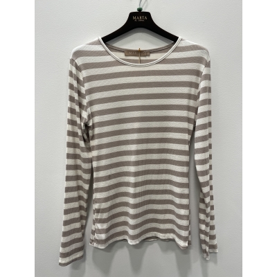 Denne skønne Marta Du Chateau stribet bluse i Sand og råhvid, den er med lange ærmer og med rund hals. Den er super skøn og have under kjoler, strik og veste