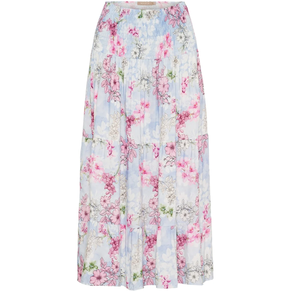 Smuk og romantisk nederdel fra Marta du Chateau med et fint blomsterprint i lyse forårsfarver. Nederdelen er lavet i 100% viskose, som gør den let, blød og utrolig behagelig at have på.