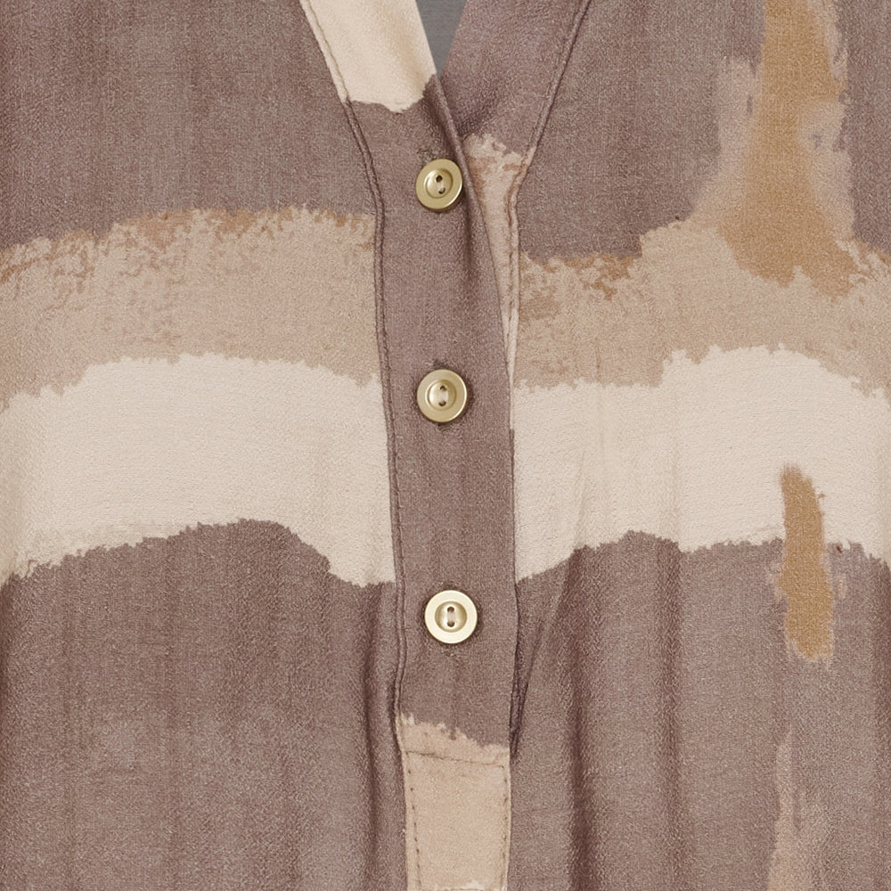 Smuk og feminin kjole fra Marta i et flot mønstret design i rolige naturfarver. Kjolen har en elegant kinakrave med knapper, lange ærmer med smock ved håndleddene og et løst, komfortabelt snit, der falder flot på kroppen. Den lette kvalitet gør kjolen behagelig at have på – perfekt både til hverdag og mere pæne anledninger.