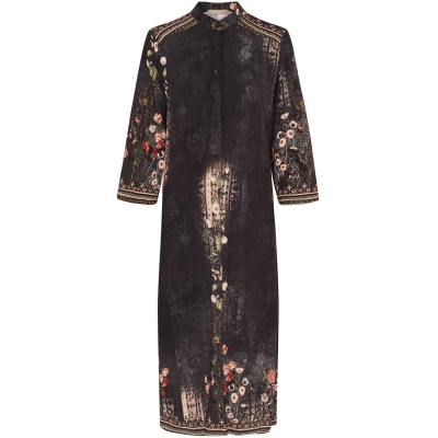 En utrolig smuk og elegant kjole fra Marta, designet i en let og behagelig kvalitet med 90% viskose og 10% nylon. Kjolen har et unikt og kunstnerisk print i mørke nuancer med florale detaljer, som giver et eksklusivt, feminint og lidt boheme-inspireret udtryk.
