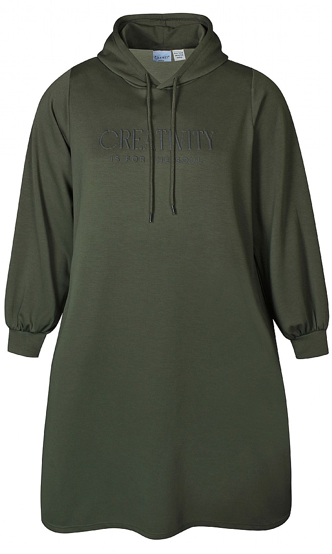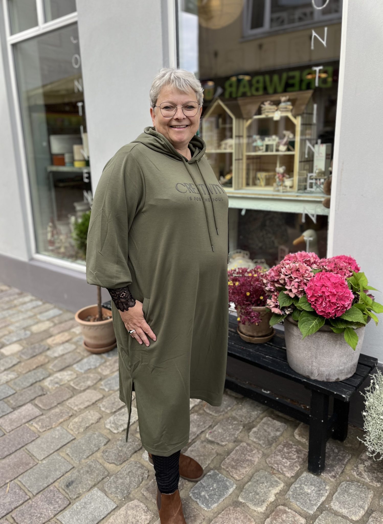 Zhenzi Mya Sweat Kjole med lange ærmer. En super lækker blød sweat kjole, med hætte og snørre.