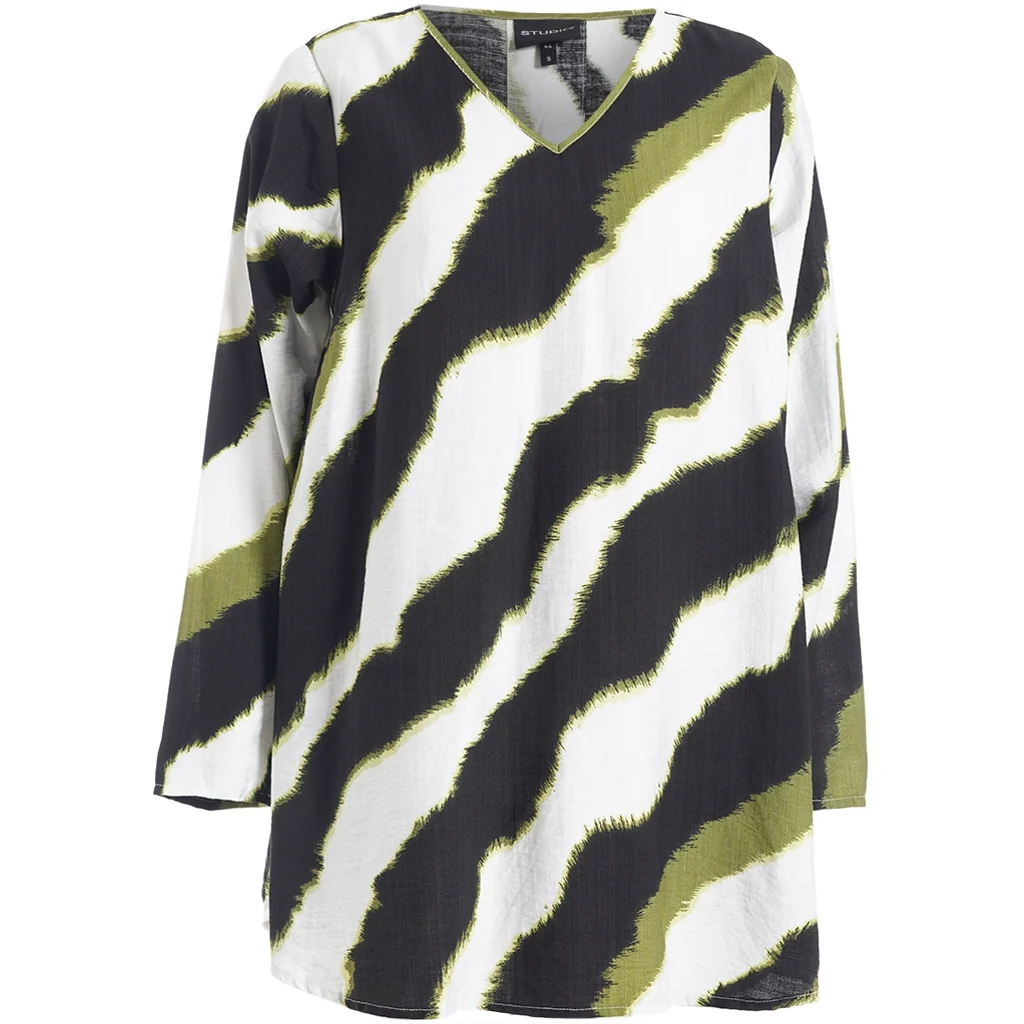 Denne smukke Studio bluse er designet med fokus på komfort og pasform. Blusen har en løs og rummelig pasform, som falder flot og behageligt på kroppen. Den hofte-lange længde gør den nem at style både til bukser og nederdele.