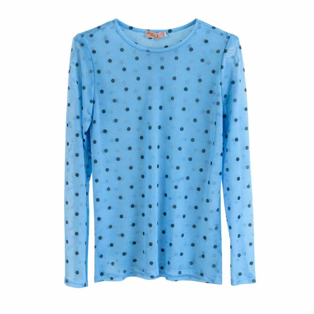 Den fineste blå mesh bluse med små prikker – feminin, let og super trendy 💙
