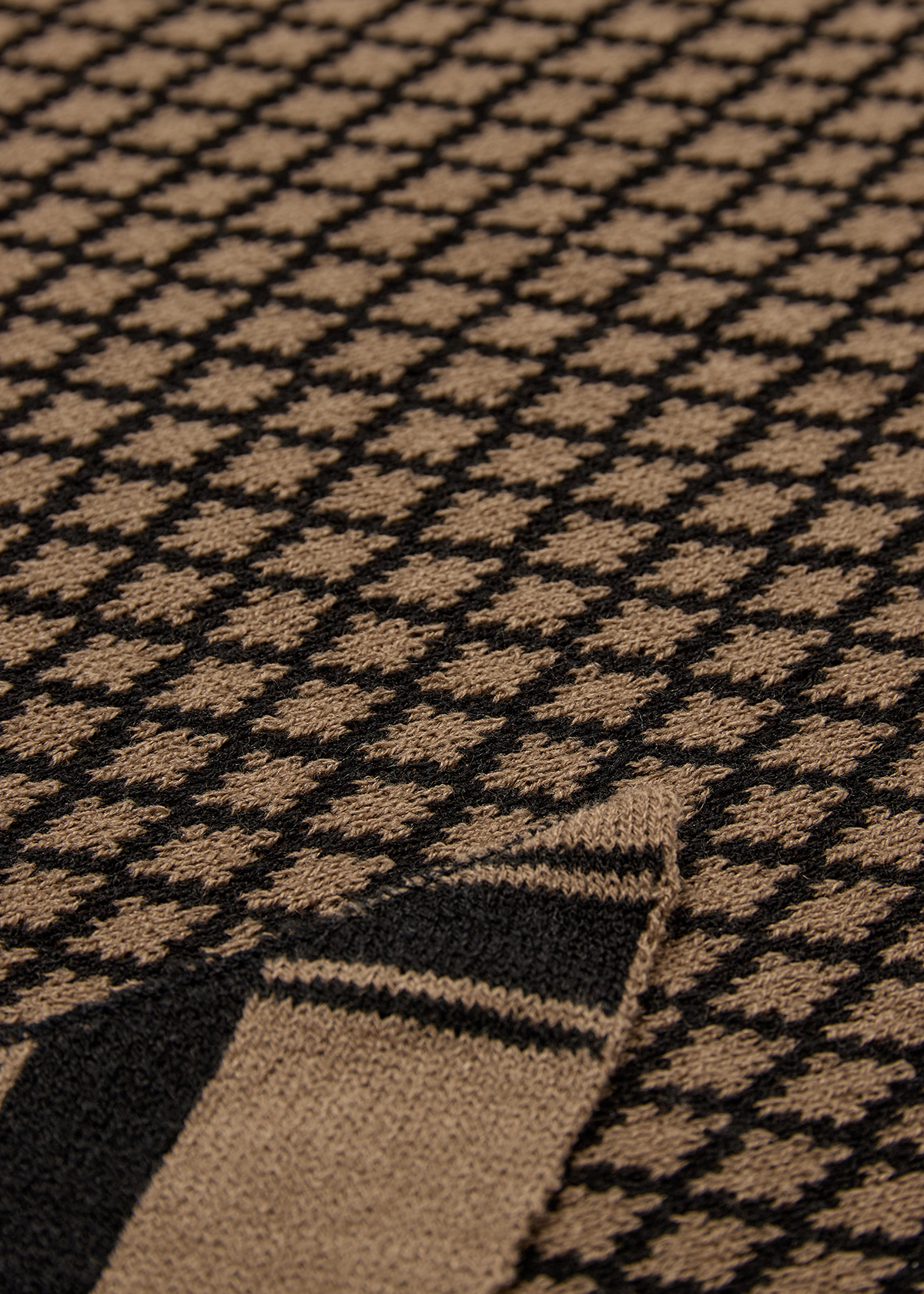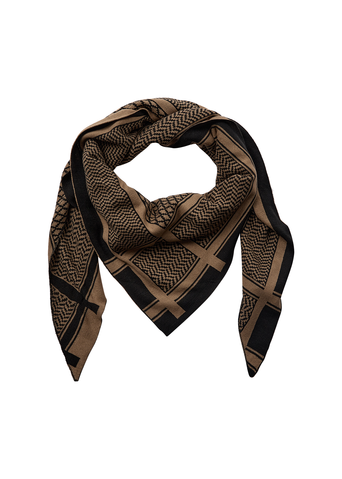 Wa-Gulli Sort/Sand Super lækker tørklæde fra Wasabii. Tørklædet kan både bruges inde over en skjorte eller strik, hvis man syntes det trækker lidt. Ellers er tørklædet smart til overtøj her til efteråret.