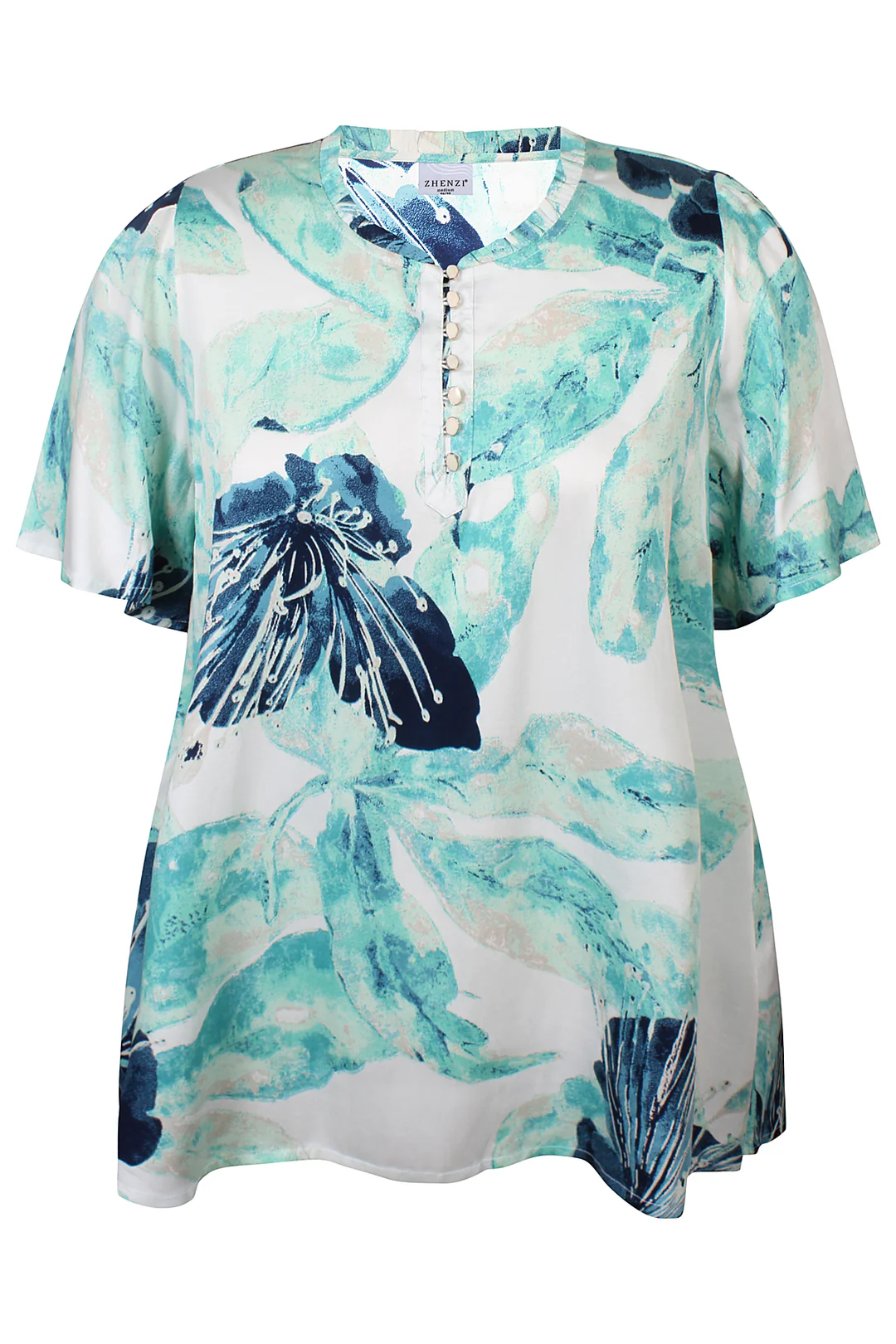 ZHENZI JALYN GRØN OG BLÅ MIX BLUSE