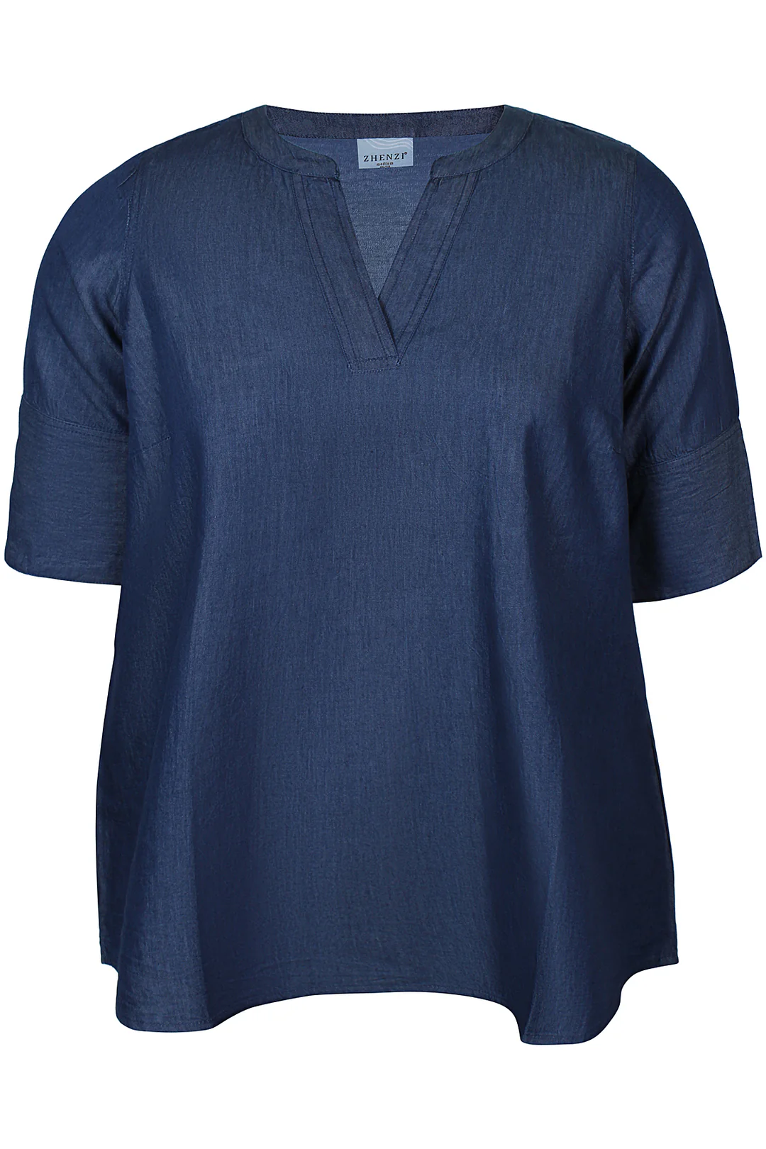 En enkel og stilren bluse fra Zhenzi i en smuk mørkeblå nuance. Den lette kvalitet i bomuld og tencel føles blød mod huden og falder flot, hvilket giver et afslappet og behageligt fit.