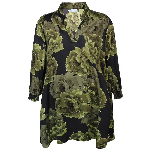 Smuk Zhenzi kjole i eksklusiv viskose satin med flot blomsterprint i grønne nuancer. Kjolen har en afslappet pasform med lommer i siderne og feminine detaljer ved halsudskæringen. Den glatte satin kvalitet giver et elegant fald og en komfortabel fornemmelse mod huden. Perfekt både til hverdag og fest – style den med leggings og støvler for et trendy look eller med strømpebukser og hæle til festlige lejligheder.